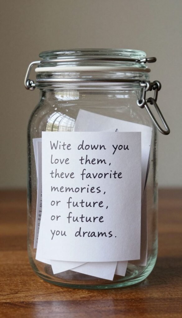 Write down reasons you love them, favorite memories, or future dreams. Fold them up and put them in a decorative jar. It’s a treasure trove of affection.