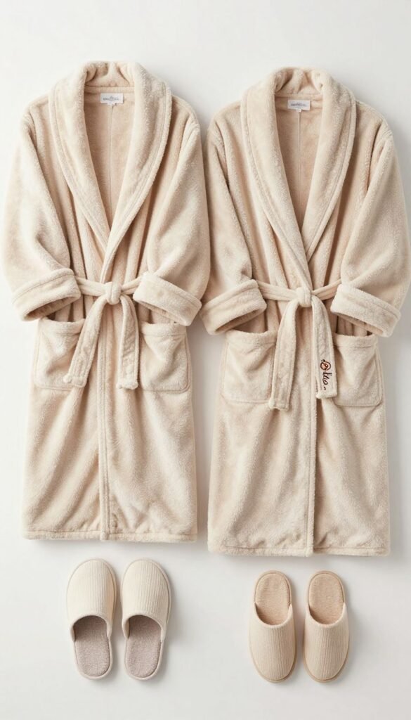 Lay out comfy, luxurious robes and slippers for both of you. Encourage maximum relaxation and pampering. It’s an invitation to unwind in style.