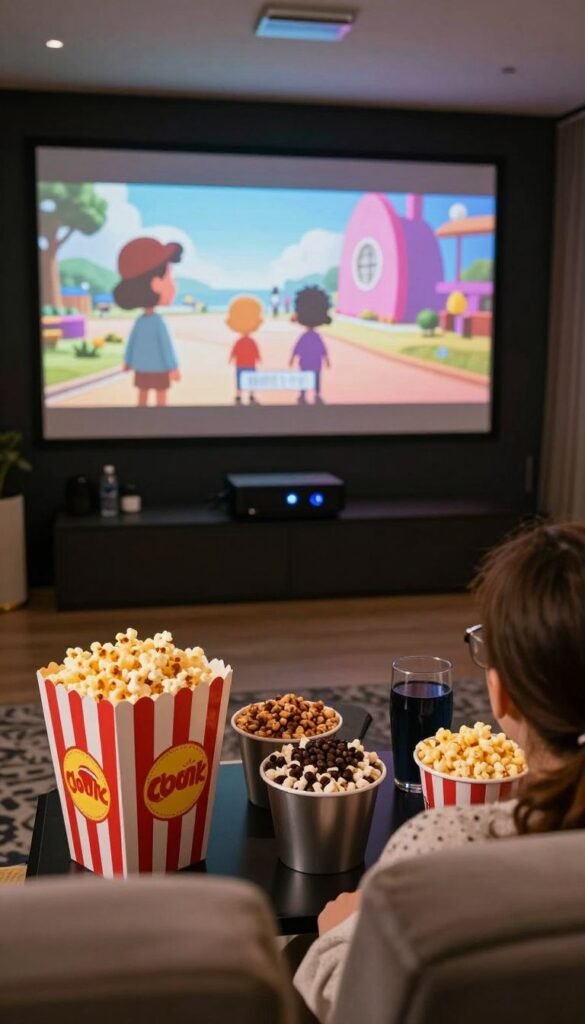 Go beyond just watching a movie. Think projector, a gourmet popcorn bar with various toppings, and super comfy seating. It’s a private cinema experience.