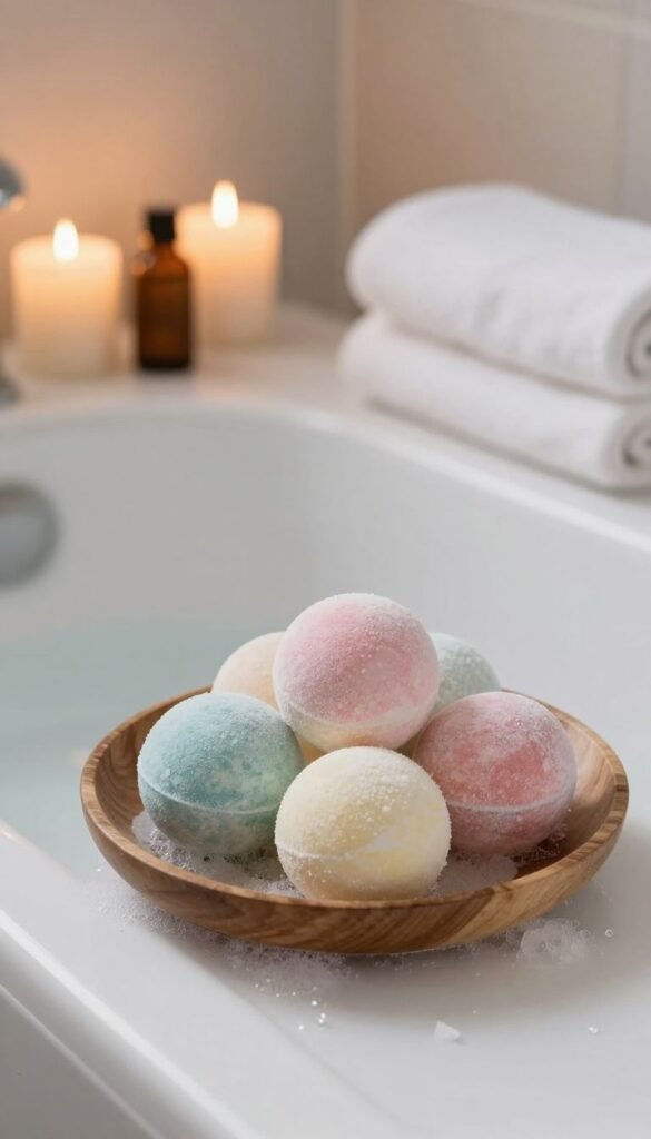 Run a luxurious bath with bath bombs, essential oils, candles, and soft towels. Transform your bathroom into a tranquil sanctuary. Ah, bliss.