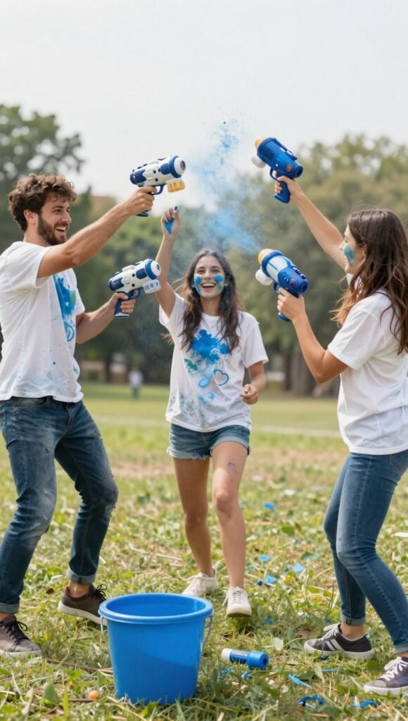 For the adventurous souls, a paint fight reveal is pure, unadulterated fun. Dress your guests in white t-shirts and arm them with squirt guns or small buckets filled with washable blue or pink paint. On the count of three, let the colorful chaos begin! Definitely provide cheap ponchos or old clothes for guests who prefer to stay (relatively) clean. It’s a vibrant, memorable, and totally unique way to share the news.