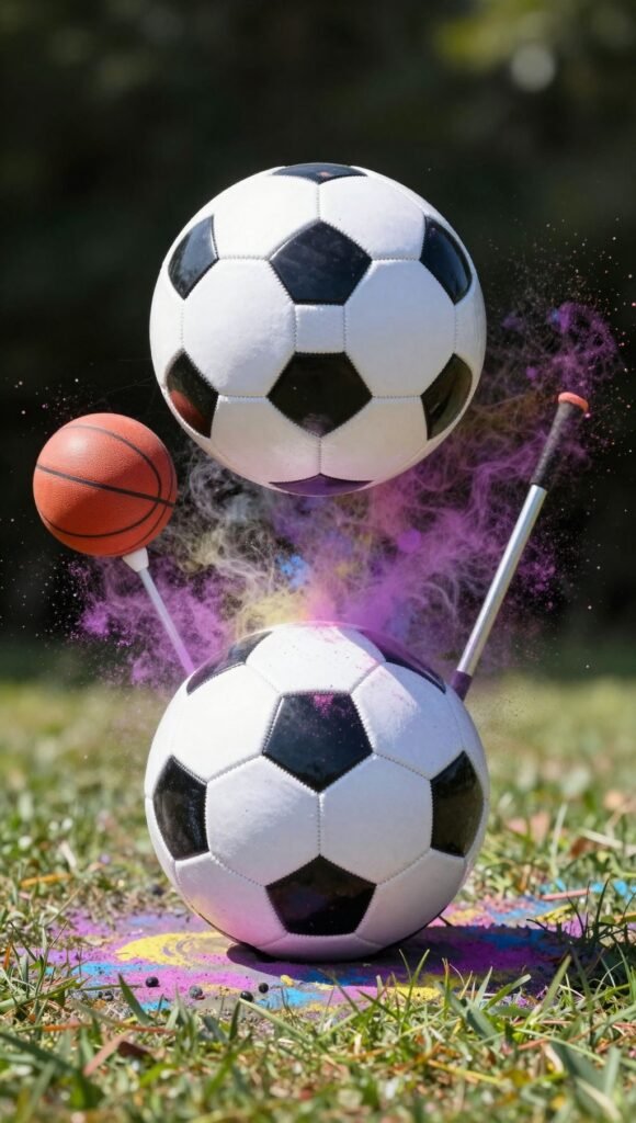 Are you sports fanatics? This one’s for you. Get a custom soccer ball, basketball, or even a golf ball filled with colored powder. Kick it, throw it, or hit it with a club. The resulting cloud of color is epic. Practice your swing or kick beforehand to make sure you get a good, dramatic burst. It’s a high-energy, action-packed reveal that’s perfect for a backyard bash.