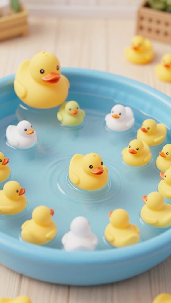 For a smaller, more intimate gathering, a duck race is surprisingly charming. Fill a kiddie pool or even a bathtub with water. Have a bunch of neutral rubber ducks, and one special duck with a blue or pink bottom. Guests pick a duck, or you release them all and see which color wins the race to the finish line. Make sure your chosen colored duck is clearly identifiable once flipped over. It’s quirky, cute, and totally unexpected.