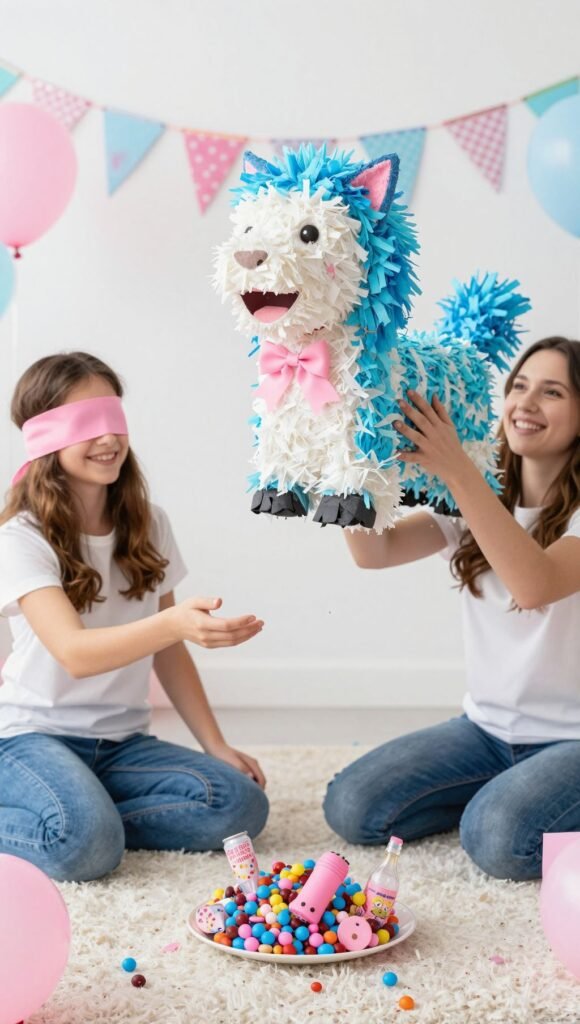 Bring back those childhood party vibes with a gender reveal piñata. Fill it with blue or pink candies, small toys, or confetti. Blindfold the parents-to-be (or a designated guest) and let them take turns whacking it until the sweet secret tumbles out. Have a designated safe zone for spectators, because flying candy is no joke. It’s a fun, energetic reveal that’s a hit with all ages.