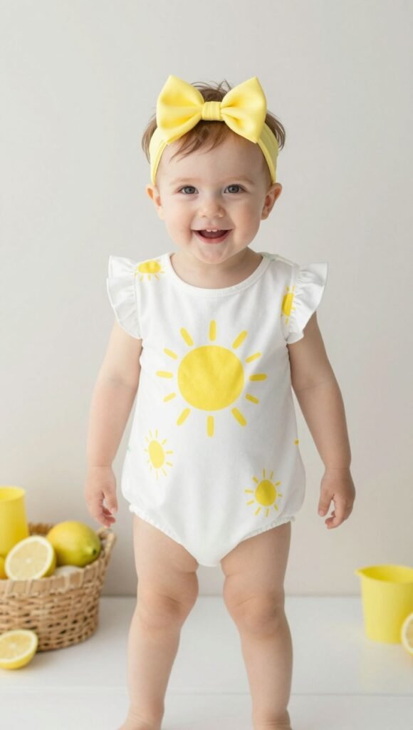 Go big with yellows, oranges, and whites. Think sunflowers, lemon slices in water, and bright balloons. A woven pro tip: Gift guests small potted succulents or seed packets with a tag saying “Watch Me Grow.” It’s a theme that radiates happiness and optimism.