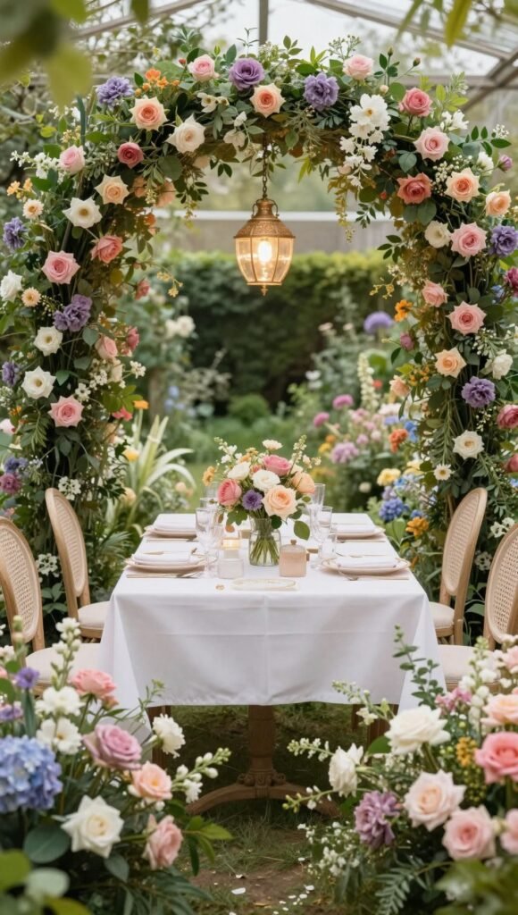 Fill the venue with an abundance of fresh flowers, greenery, and charming garden accents like watering cans and birdcages. Consider using mismatched vintage teacups for a touch of whimsy. Pro tip: Set up a “build your own bouquet” station for favors. It’s a theme that’s bursting with life and beauty.