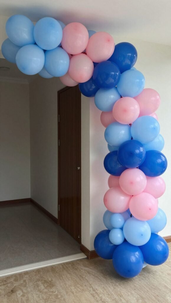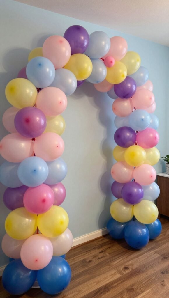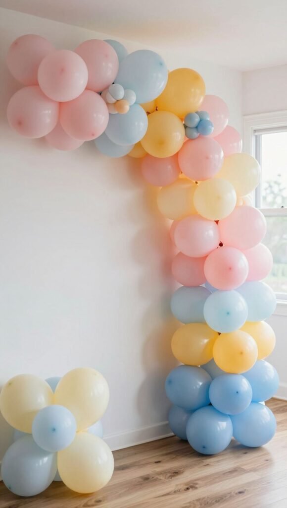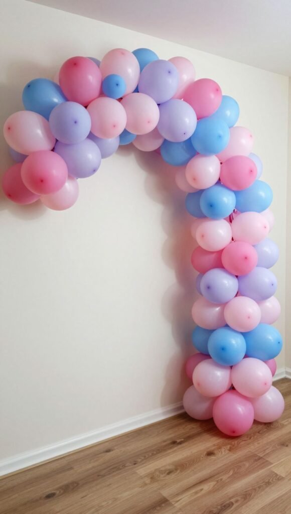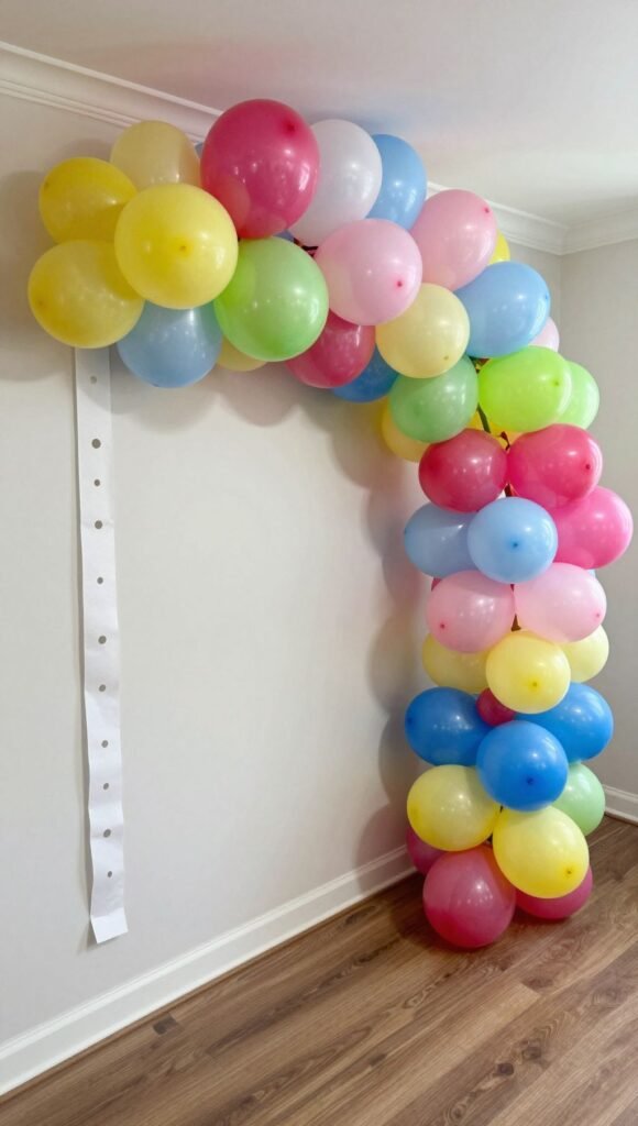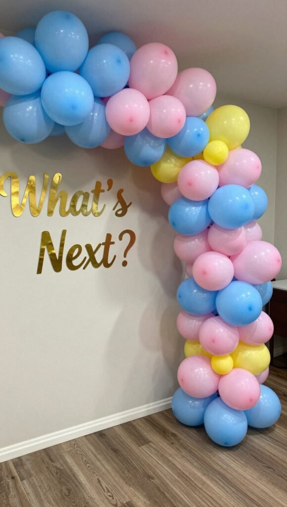What you’ll need: Balloons (various sizes & colors), balloon decorating strip, balloon pump (electric recommended!), command hooks or strong adhesive, fishing line or strong string, scissors, optional: floral wire, glue dots, greenery, fresh or faux flowers, additional decorative elements like foil balloons, ribbons, or custom signs.