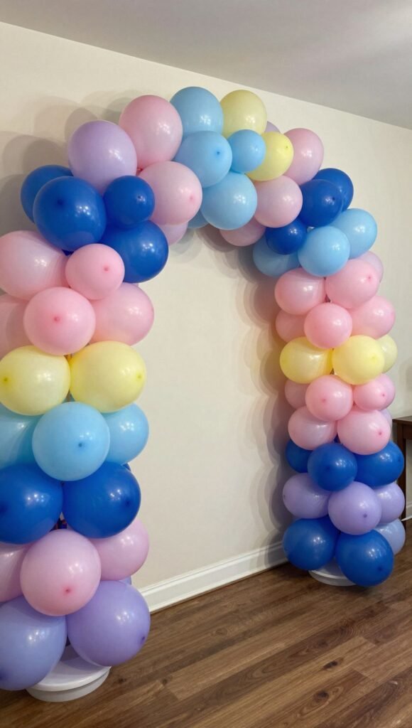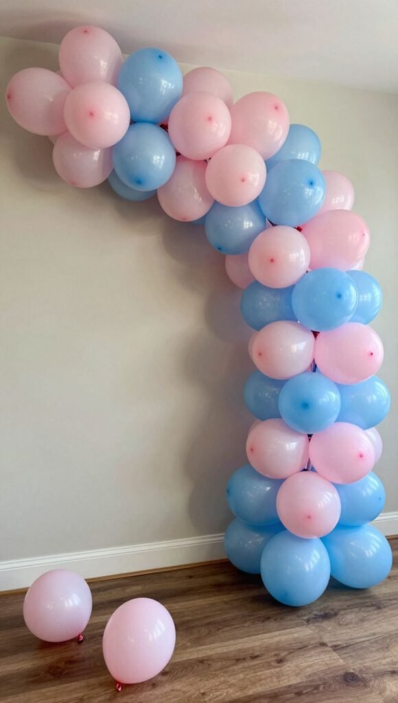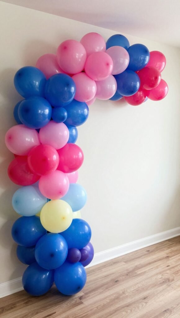 - Quick solution: You likely need more filler balloons. Inflate additional 5-inch or 7-inch balloons (in your chosen colors) and use glue dots to attach them directly into the visible gaps and sparse areas. Create small clusters of two or three balloons for extra fullness. Don’t be afraid to layer and tuck them in!