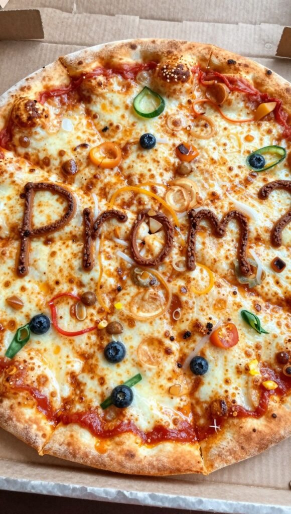 Grab their favorite pizza, or even a few mini ones if you’re feeling extra. Arrange toppings to spell out “Prom?” or simply write the question on the inside of the box lid. Deliver it personally for maximum impact. A pro tip here: make sure the pizza is still warm. Cold pizza is a deal-breaker, even for prom. This works because it’s unexpected, delicious, and shows you know their carb preferences.