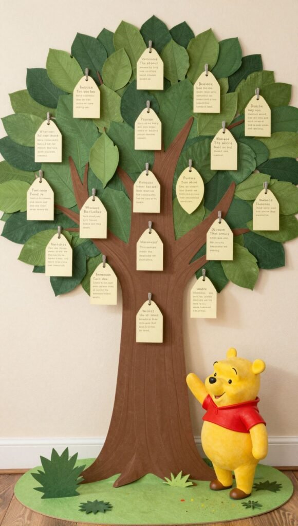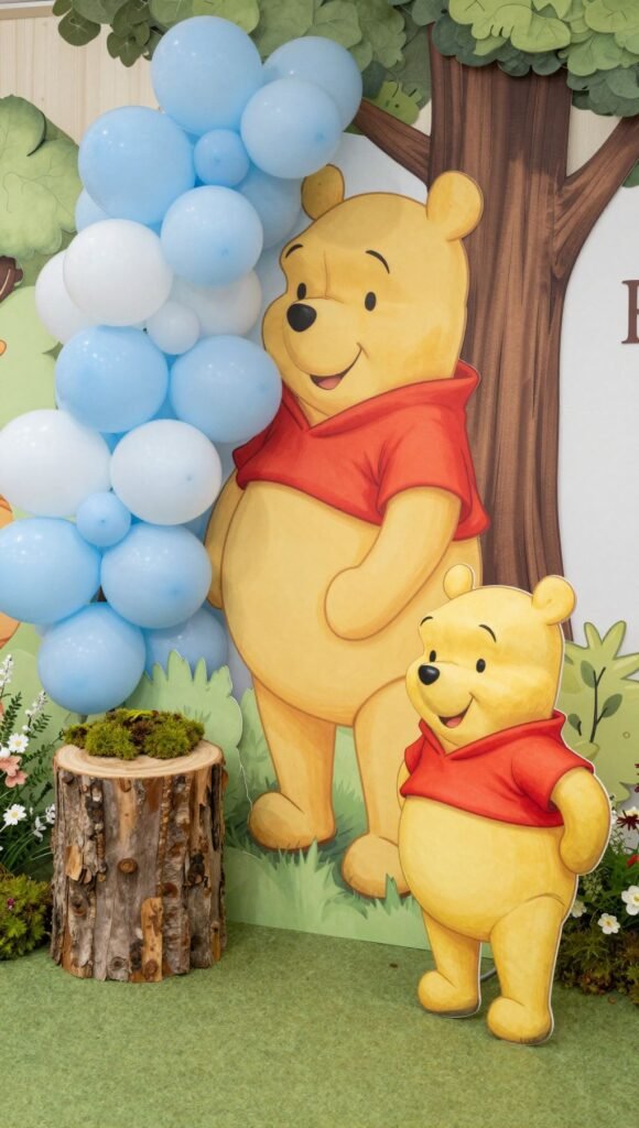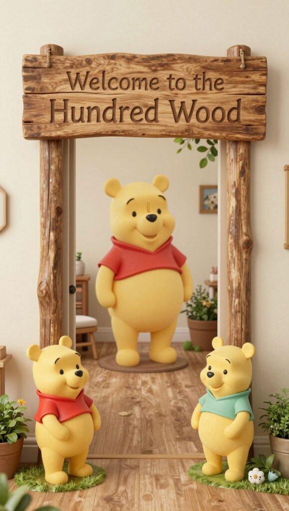 Pro tip: Use a vintage-style chalkboard for your welcome message; it adds instant charm and you can reuse it later. This little touch immediately transports everyone into the whimsical world of Pooh and friends, making them eager to see what’s next.