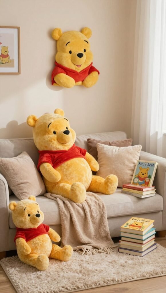 Create a cozy nook where guests can relax and enjoy the quiet moments. Pile up some comfy cushions, blankets, and a selection of classic Winnie the Pooh books. It’s a lovely spot for a quiet chat or for parents to read to their own little ones. Sometimes, doing nothing leads to the very best of something.